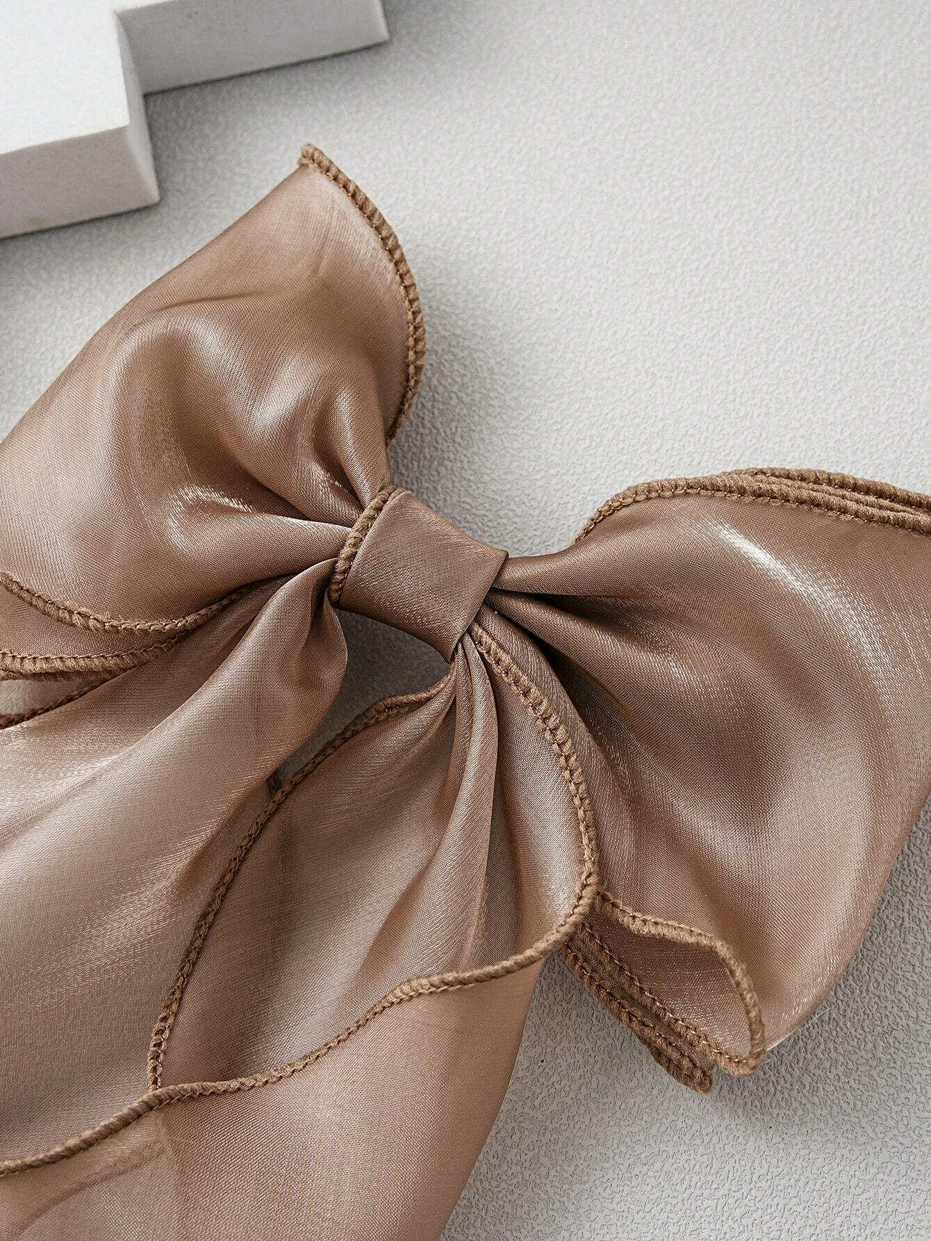 White Mesh Ribbon Bowknot Hair Clip For Women, Large Size Hairpin