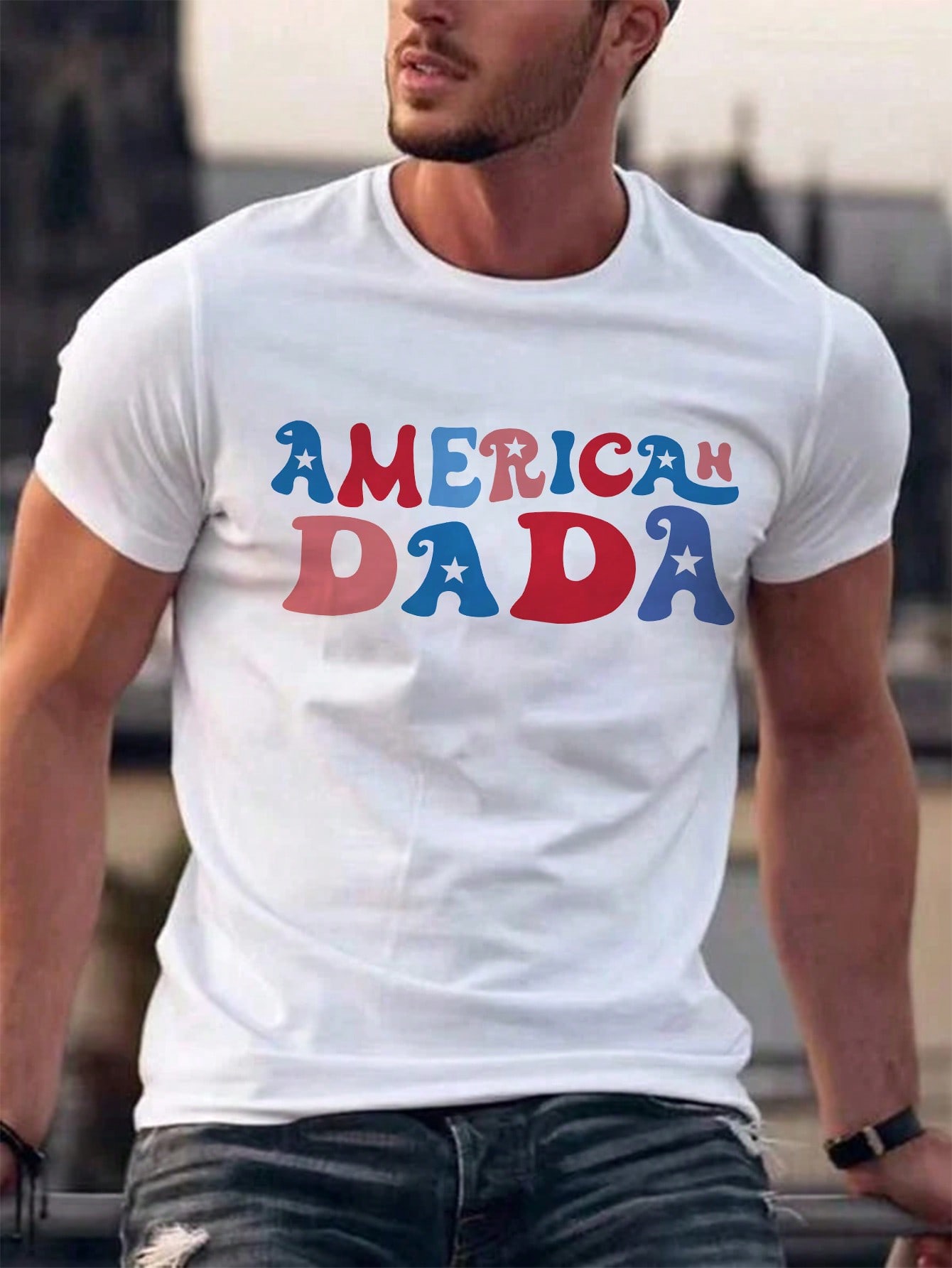 White Text Printed Casual Men’s Fashion Round Neck Short Sleeve T-Shirt, Family Matching Outfits Mommy And Me (4 Pieces Sold Separately)