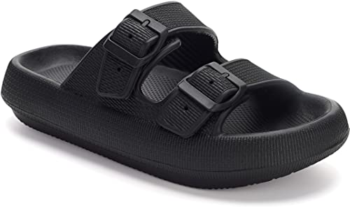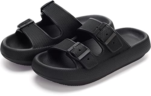 WHITIN Slides for Women Men Double Buckle Adjustable Thick Sole Pillow Slippers Bathroom Sandals