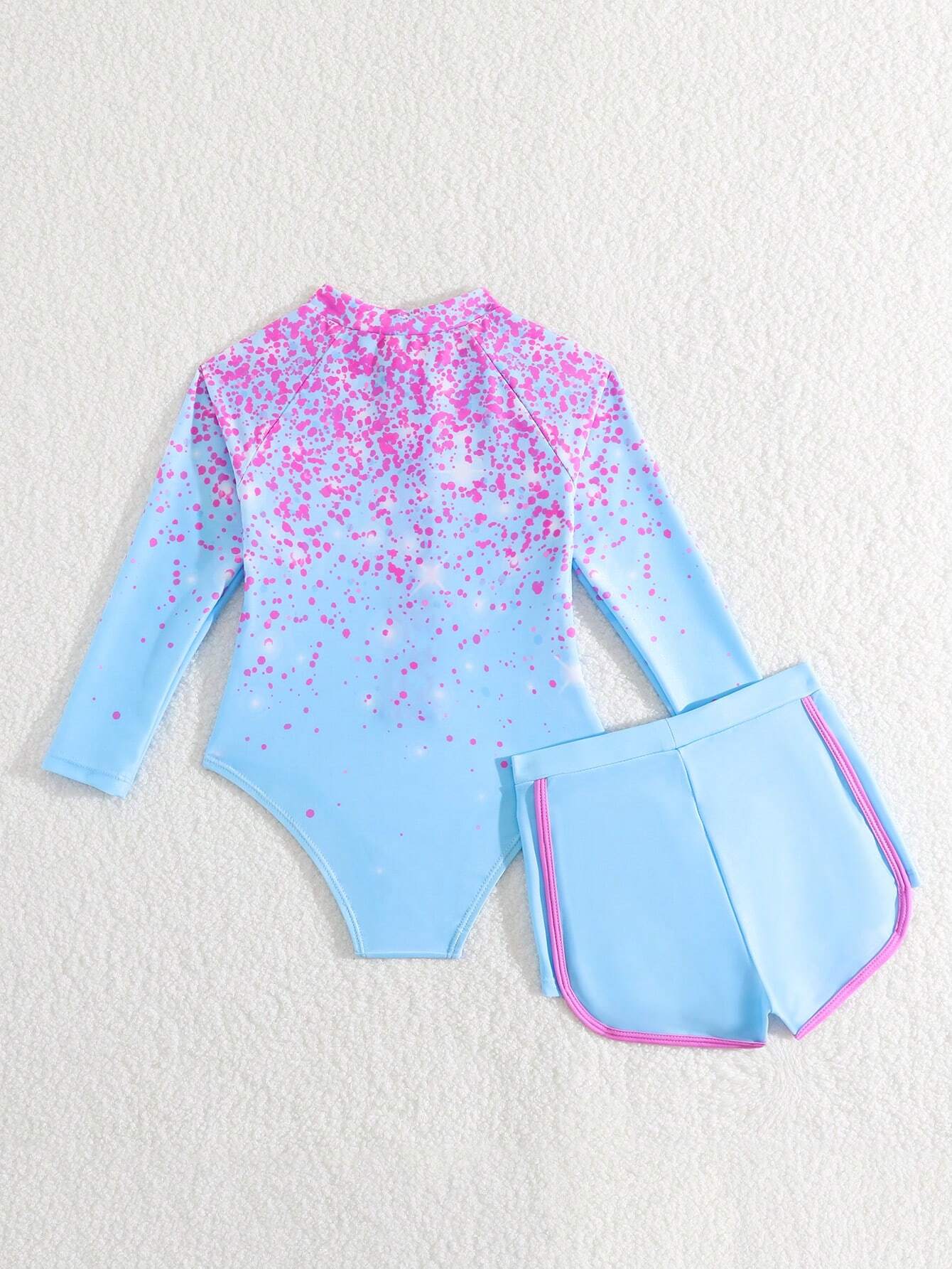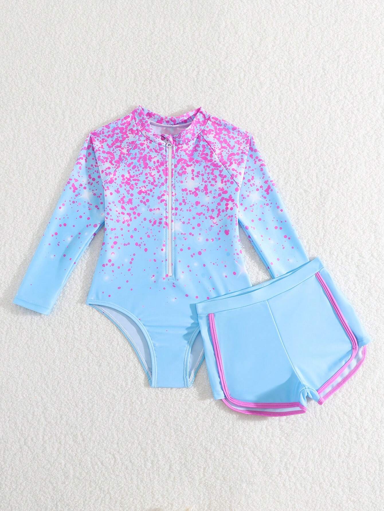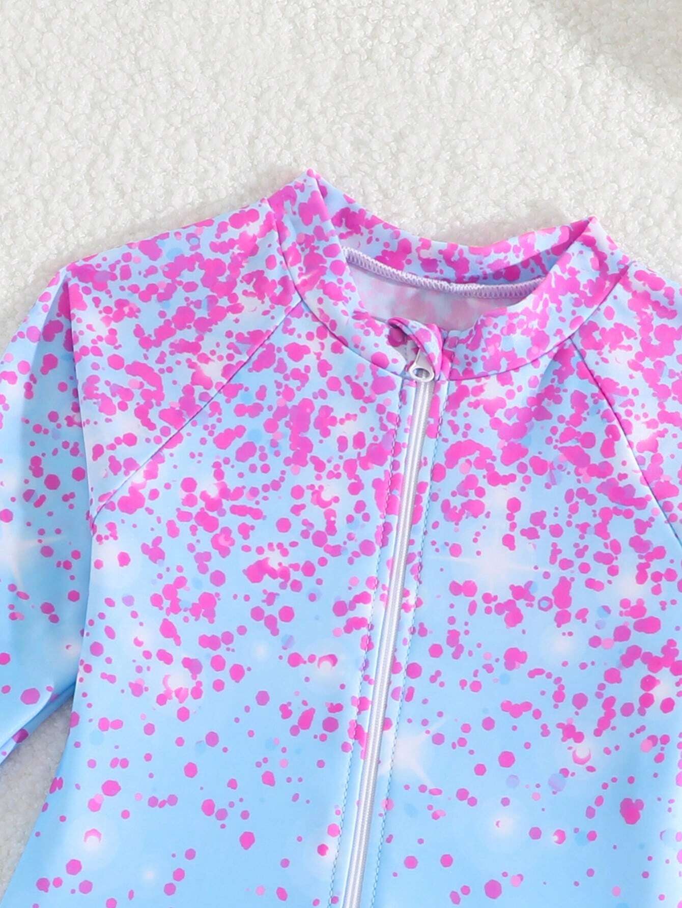 Young Girl New Summer Arrival Of A One-Piece Swimsuit . The Charming Pink Polka Dot Pattern Gives A Luxurious And Stylish Look. A Zipper Is Embellished In The Middle Of The Swimsuit, Adding An Extra Touch Of Elegance And Uniqueness. The Swimsuit Is Made Of Comfortable And Soft Fabric, Featuring A Tight-Fitting Long Sleeve Design That Presents A Graceful Figure While Providing Comfort And Style. This One-Piece Swimsuit Is Suitable For A Swimming Pool Or Beach, Showcasing Confidence And Vitality. Its Unique Design And Delicate Decorative Details Elevate Young Girl Dressing Into A Fashion Expression, Making Them Elegant And Charming By The Water. It Will Become A Summer Essential For Fashionable Swimming Moments, Be It At The Beach, Pool, Surfing Or Water Parks.